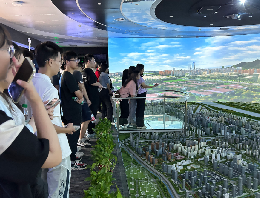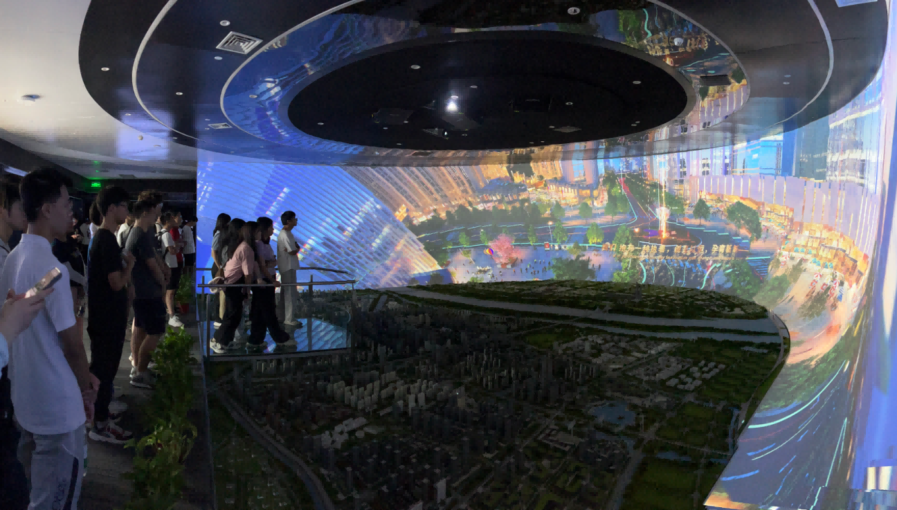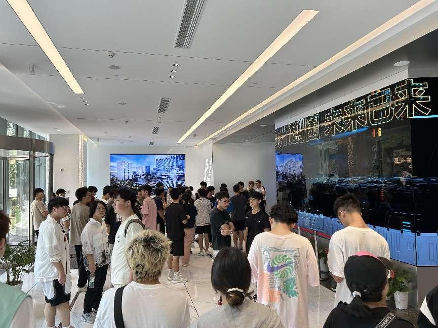 园区内现代建筑群错落有致,每一砖一瓦都蕴含着创新和科技的基因。dcbox小金库app科技IT菁英暑期实训营的学员们怀揣着对科技的无限憧憬步入研创园展厅。展厅内部设计充满科技感,一块块巨大的模型和显示屏映入眼帘,生动展现了研创园的科技规划,以及从梦想走向现实的开展历程。